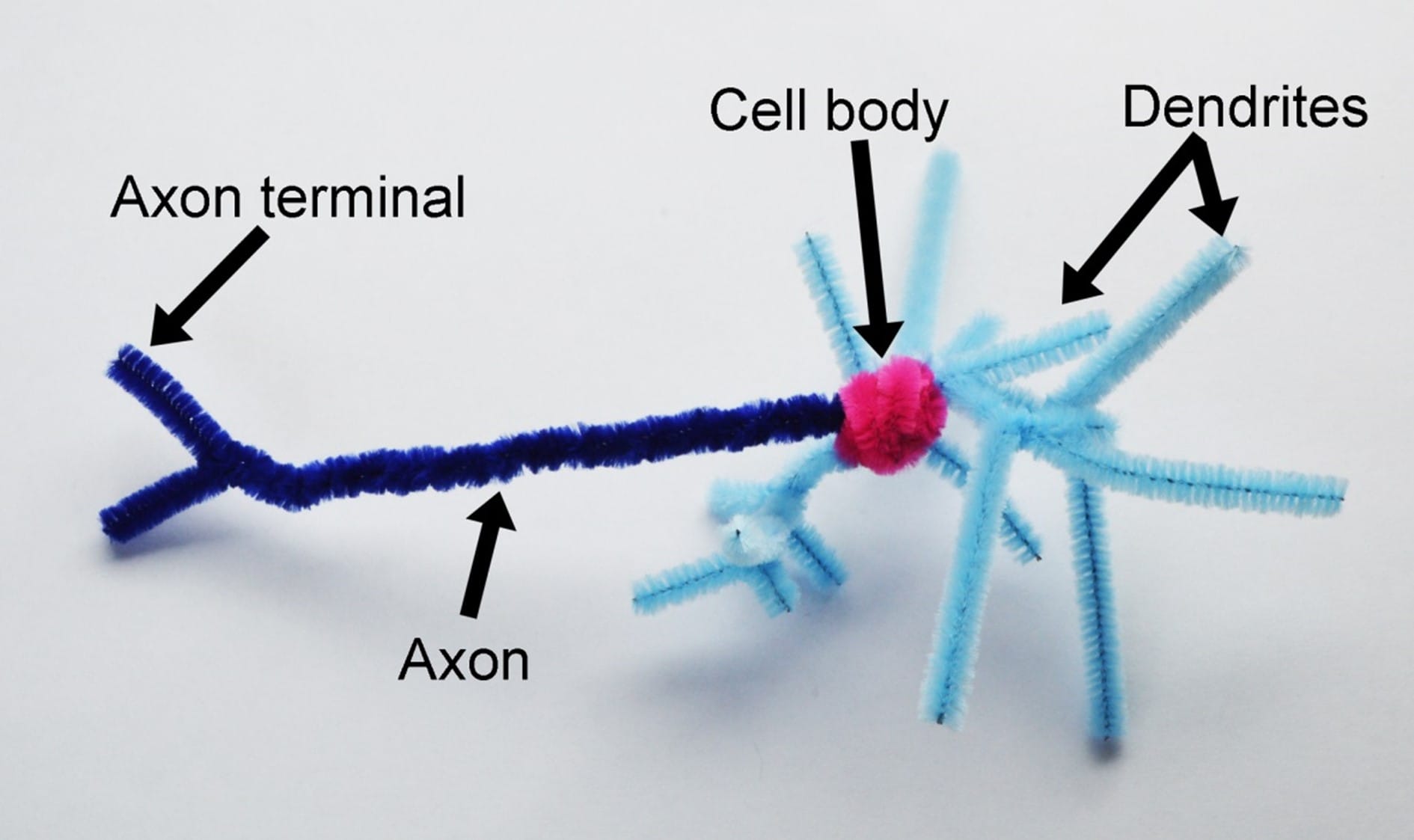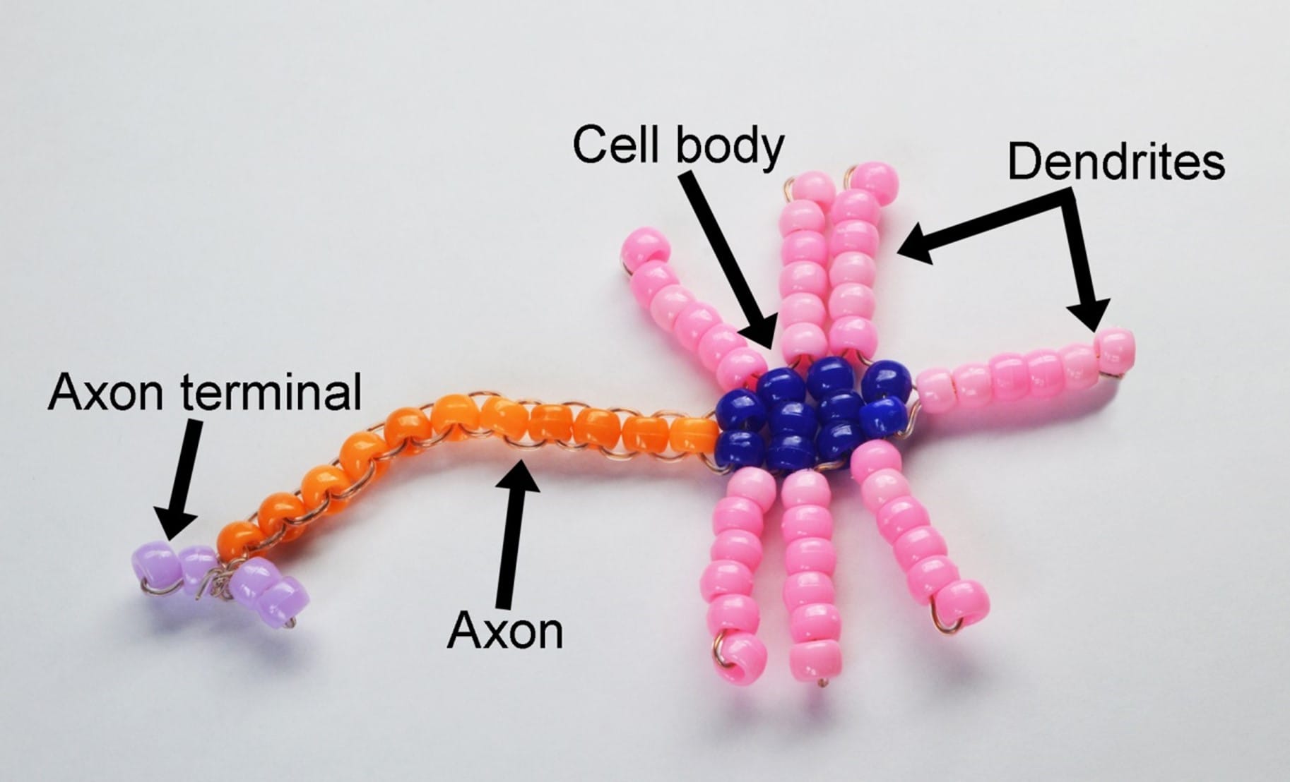 One of the first topics covered in the NNL program is neurotransmission—the process by which neurons (nerve cells) communicate. After this discussion, students create neuron models using beads, string, and pipe cleaners. Simple string and pipe cleaner neurons can be assembled in just a few minutes, while bead neurons take up to an hour to complete. Students also have the opportunity to share their creations online with their peers using a "Padlet."