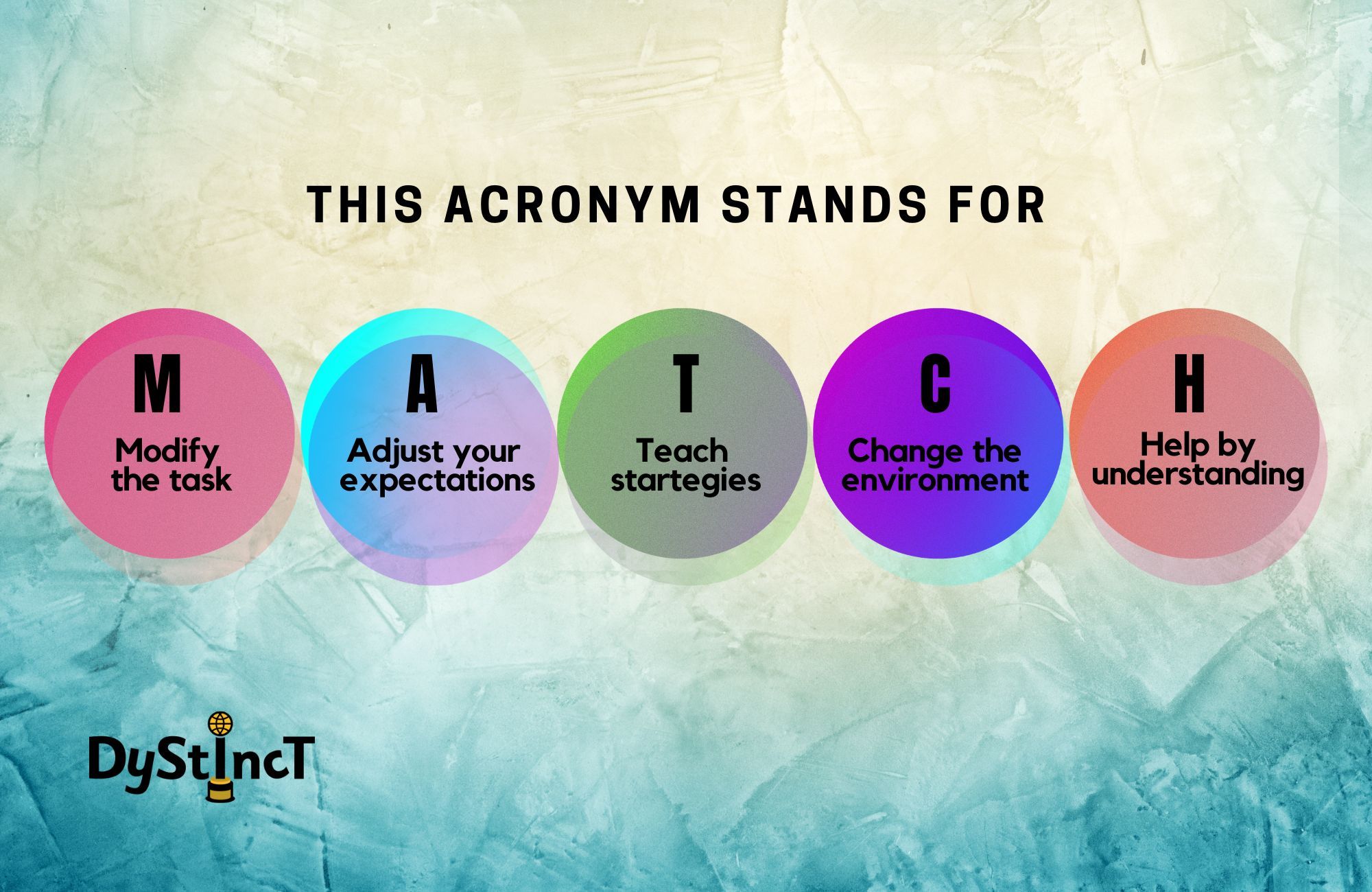 My expertise is in literacy instruction. When a student struggles with reading, we target the student's specific needs and address deficits with direct, explicit, and systematic instruction. The good news is that there are excellent strategies that can be implemented to support students with Developmental Coordination Disorder. One framework that I discovered while perusing Dystinct Magazine is called M.A.T.C.H.