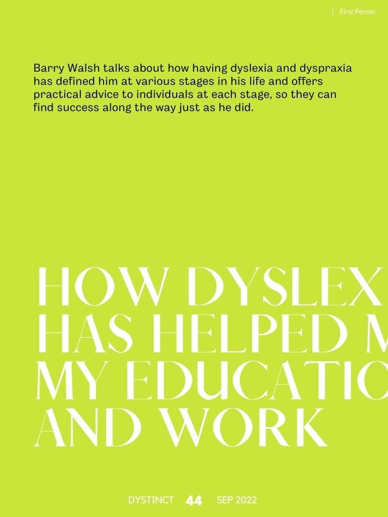 Issue 11: How Dyslexia has helped me in my Education and Work | Barry Walsh