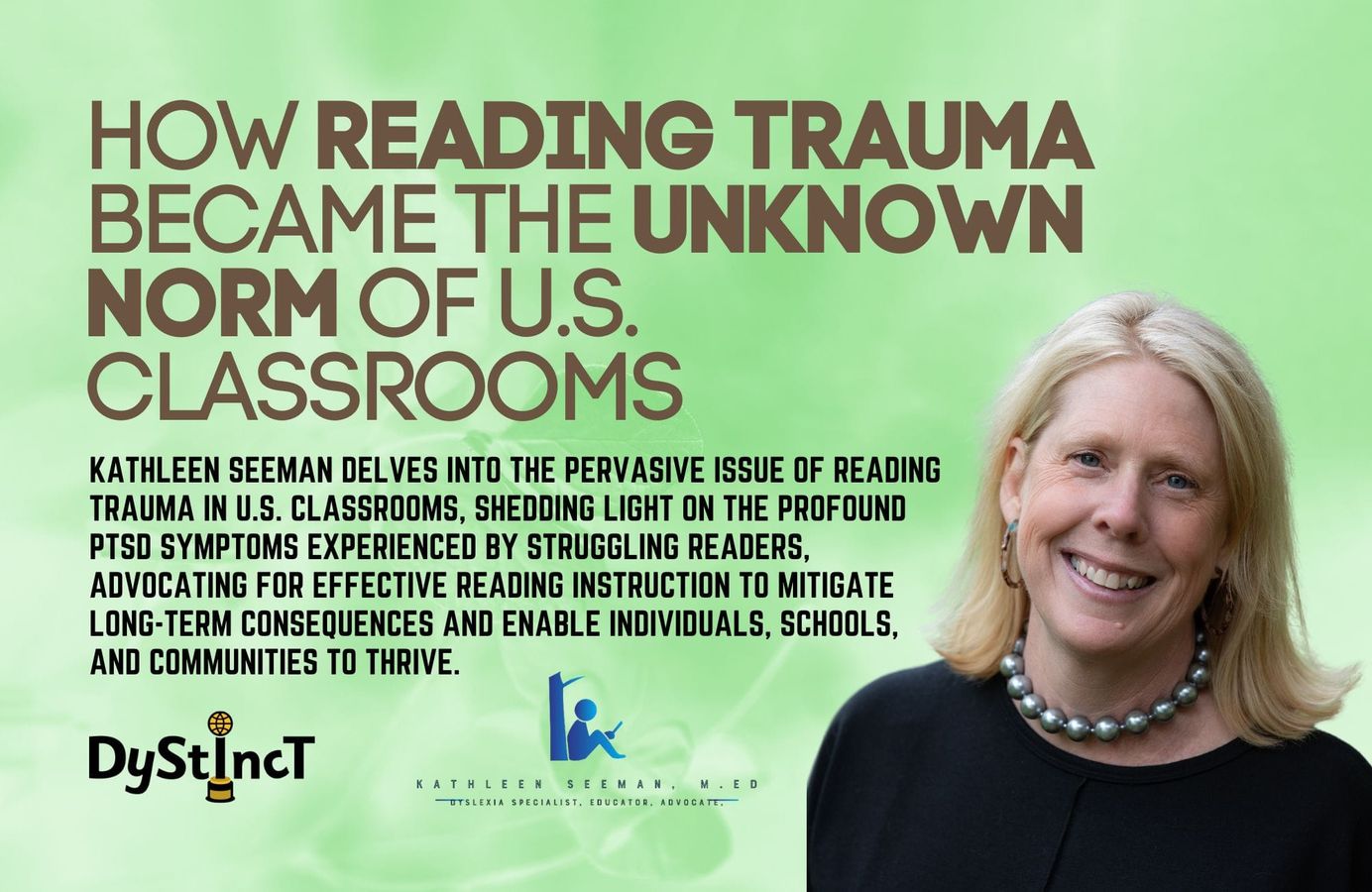 Kathleen Seeman delves into the pervasive issue of reading trauma in U.S. classrooms, shedding light on the profound PTSD symptoms experienced by struggling readers, advocating for effective reading instruction to mitigate long-term consequence.