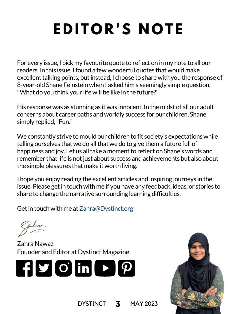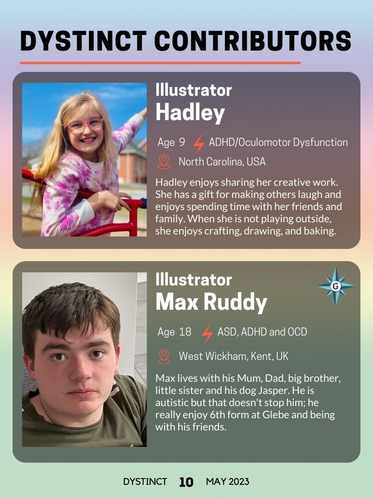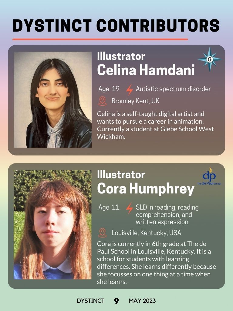Dystinct Magazine's 15th issue: May 2023 covers inspirational stories from children and adults with learning disabilities (dyslexia, dysgraphia, dysgraphia and dyspraxia) and evidence based articles from leading specialists from the field of learning disabilities.
