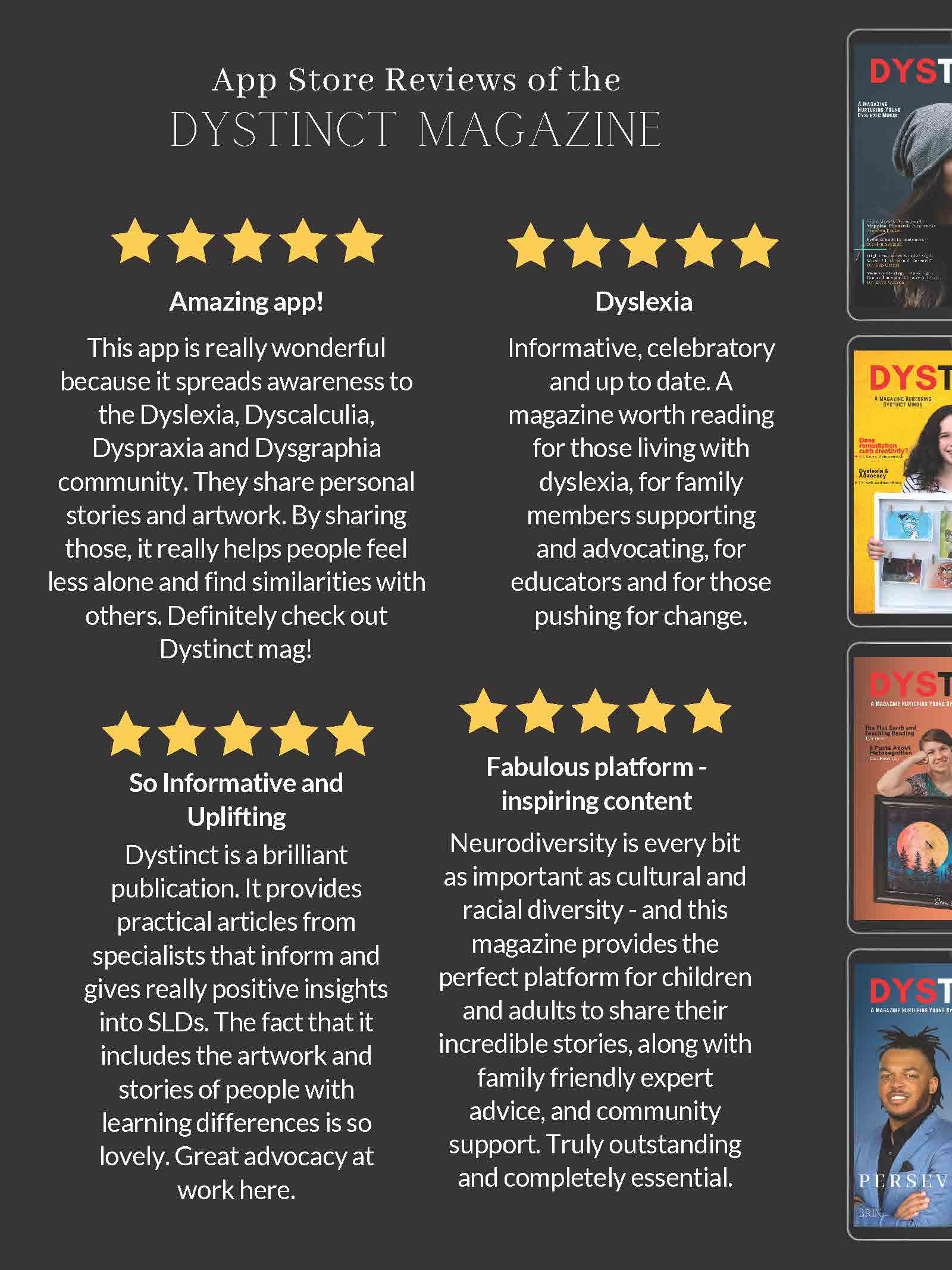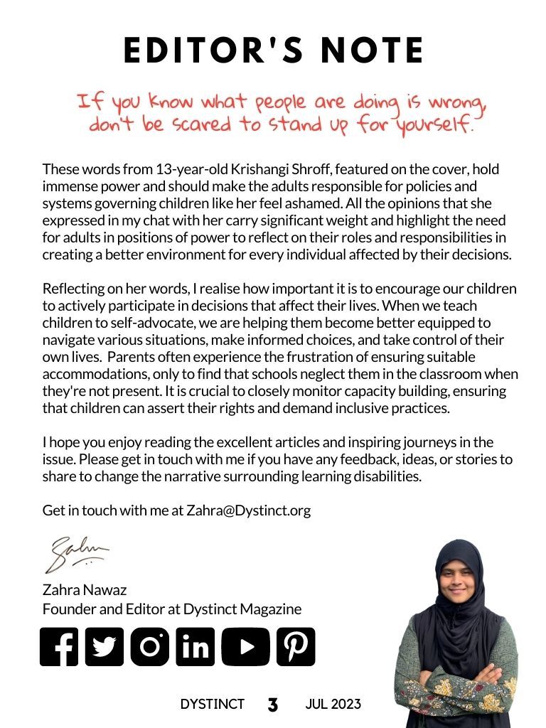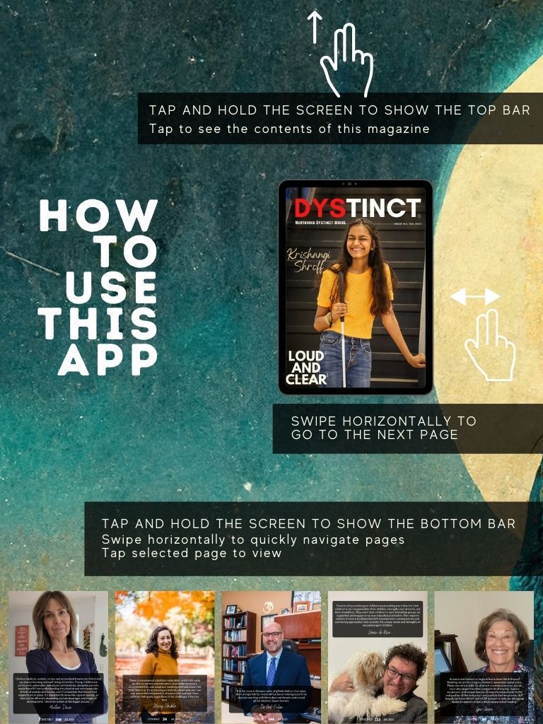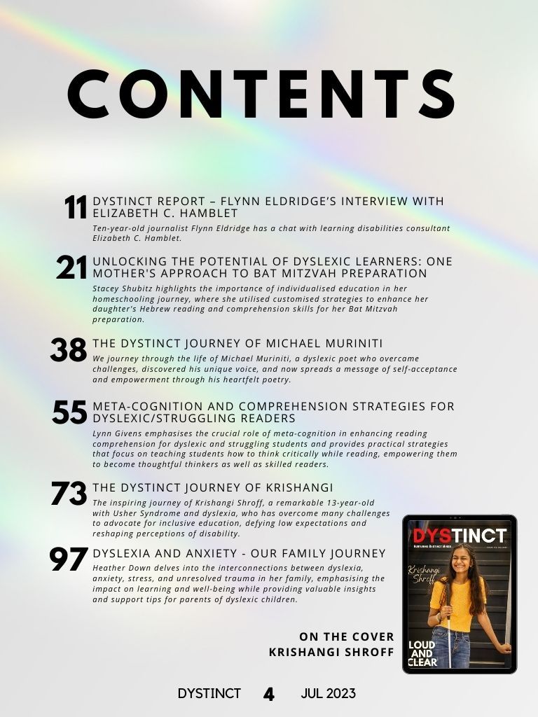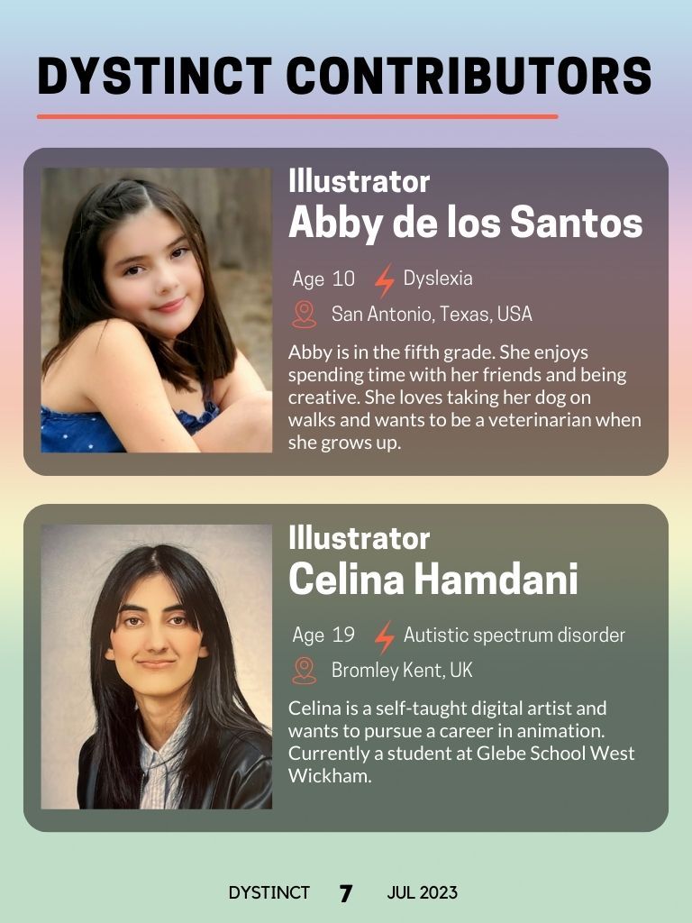Dystinct Magazine's 16th issue: July 2023 covers inspirational stories from children and adults with learning disabilities (dyslexia, dysgraphia, dysgraphia and dyspraxia) and evidence based articles from leading specialists from the field of learning disabilities.