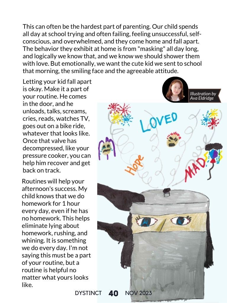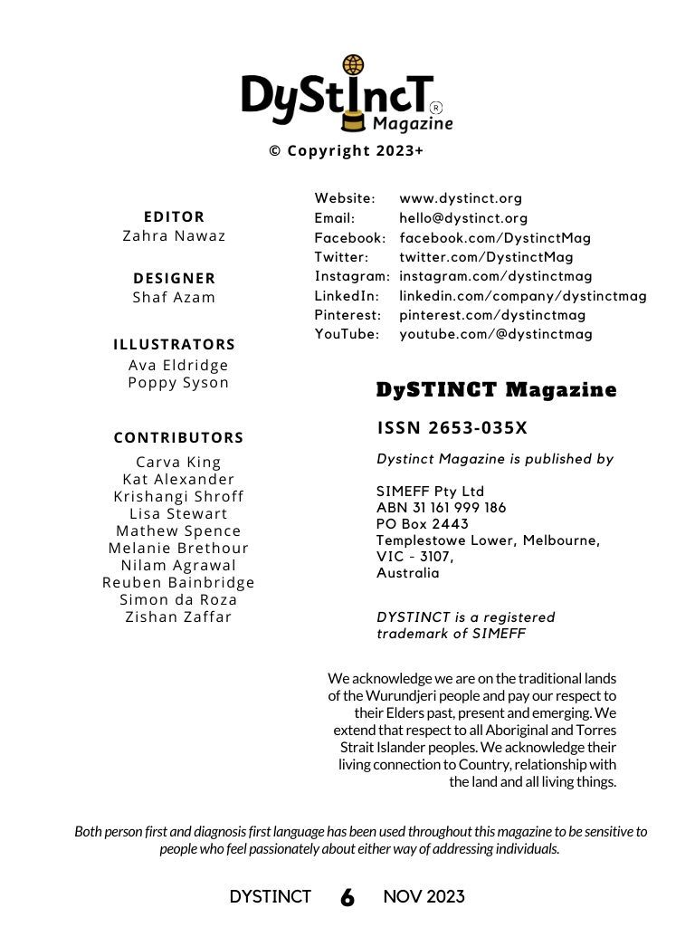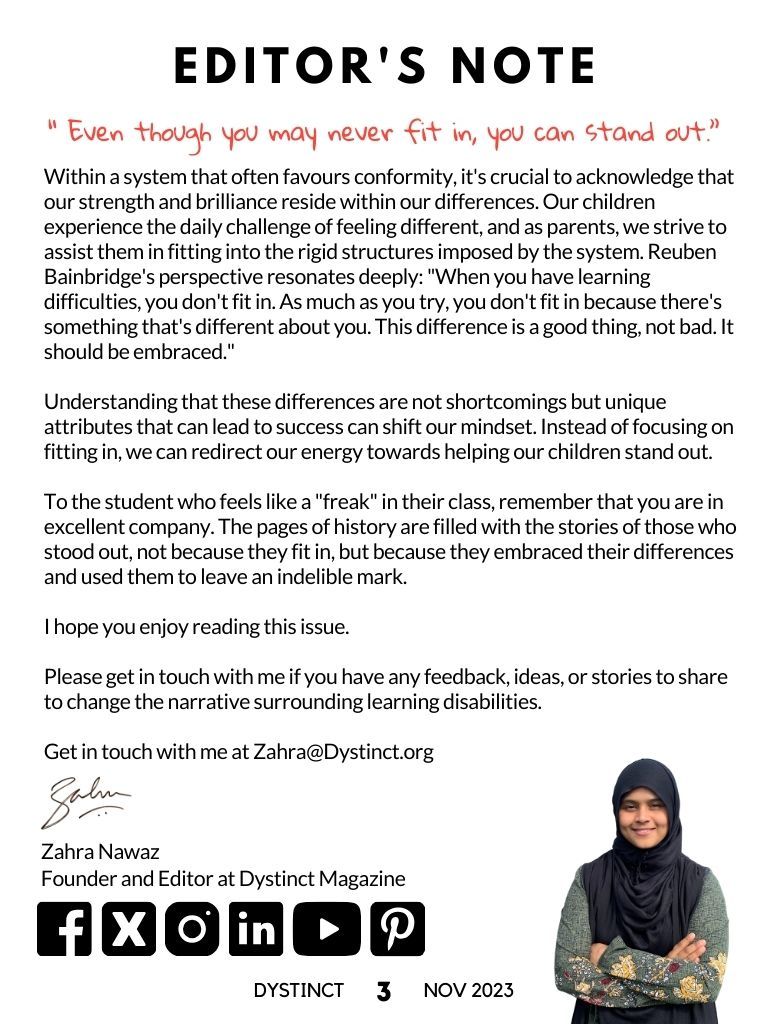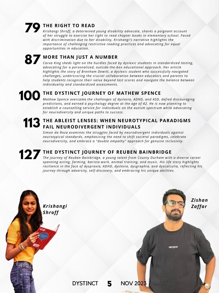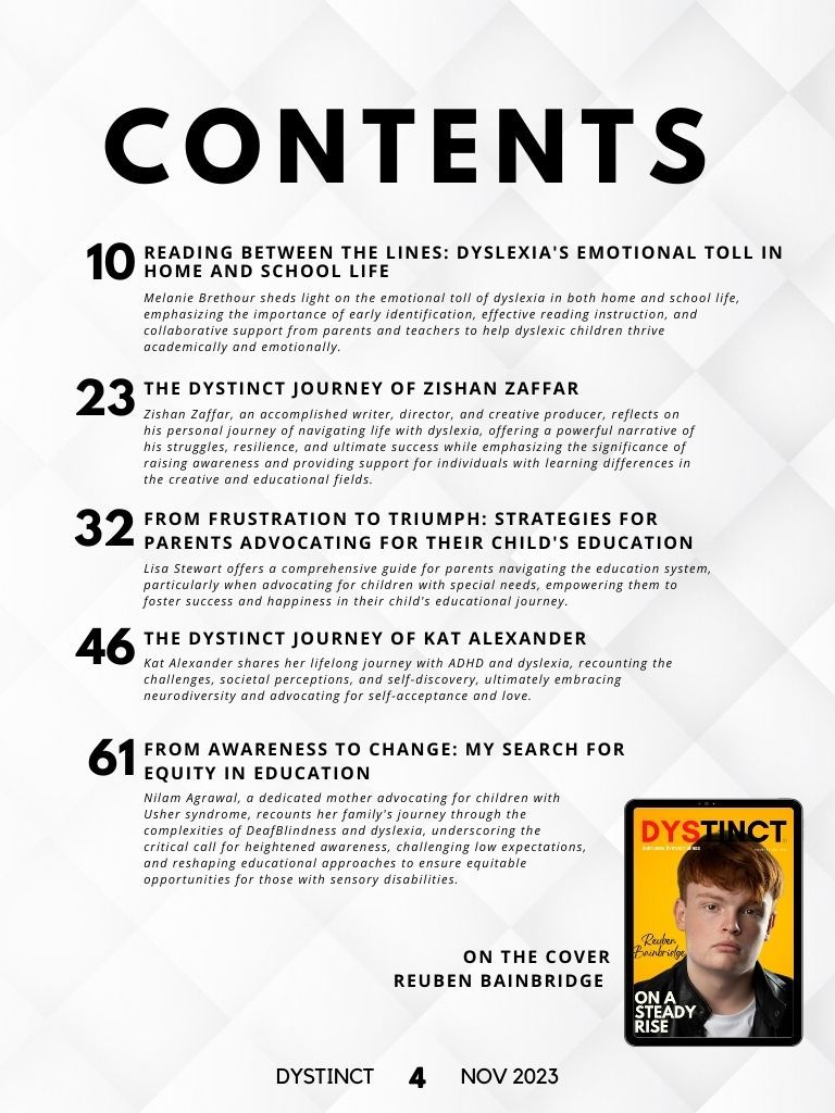 Dystinct Magazine's 18th issue: November 2023 covers inspirational stories from children and adults with learning disabilities (dyslexia, dysgraphia, dysgraphia and dyspraxia) and evidence based articles from leading specialists from the field of learning disabilities.