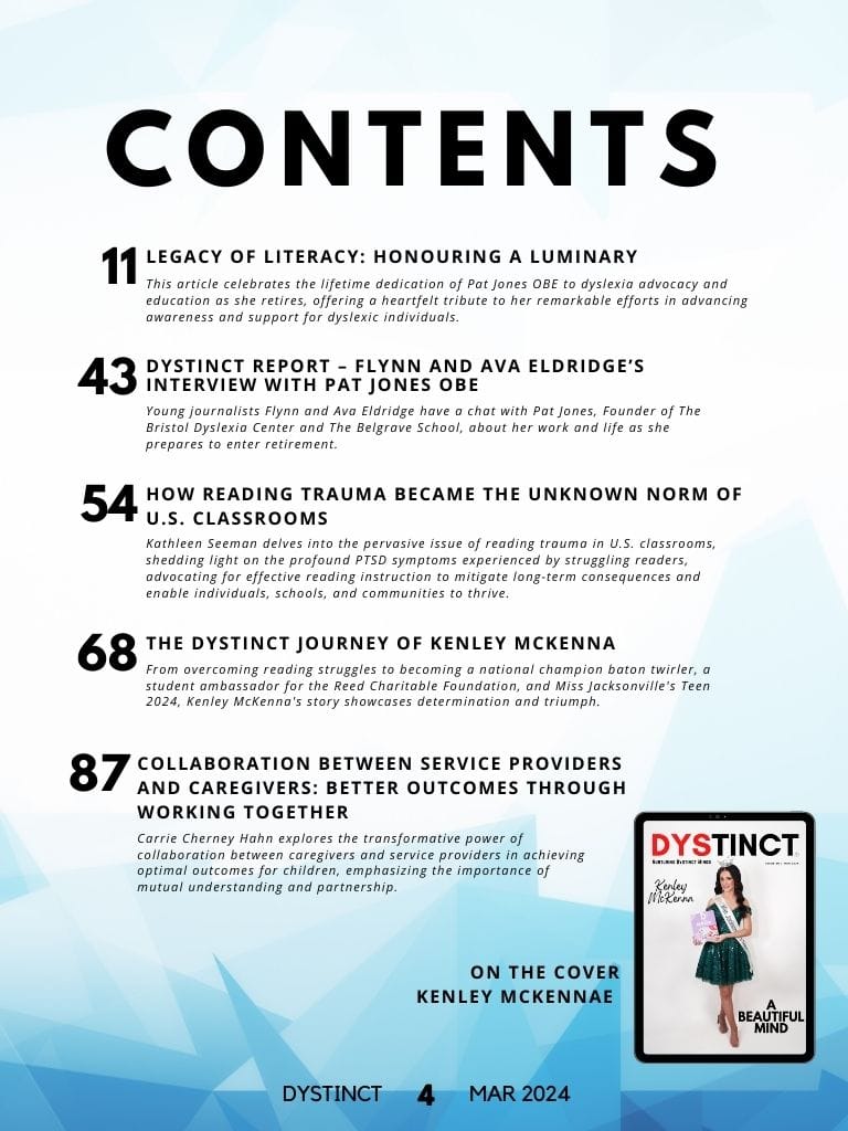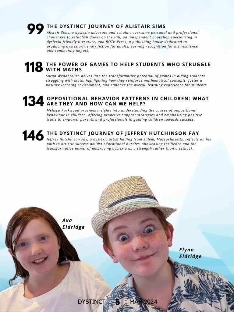 Dystinct Magazine's 20th issue: March 2024 covers inspirational stories from children and adults with learning disabilities (dyslexia, dysgraphia, dysgraphia and dyspraxia) and evidence based articles from leading specialists from the field of learning disabilities.