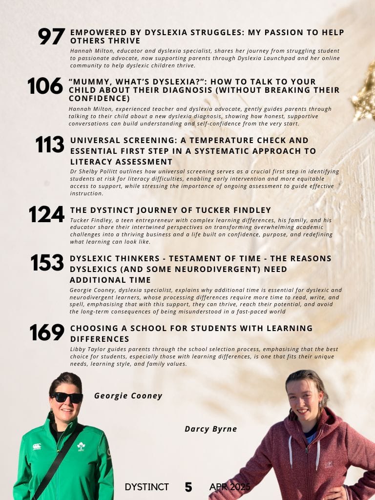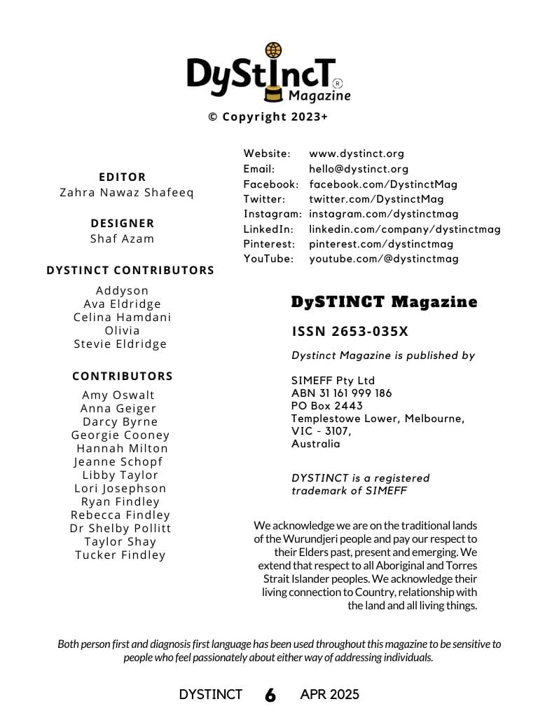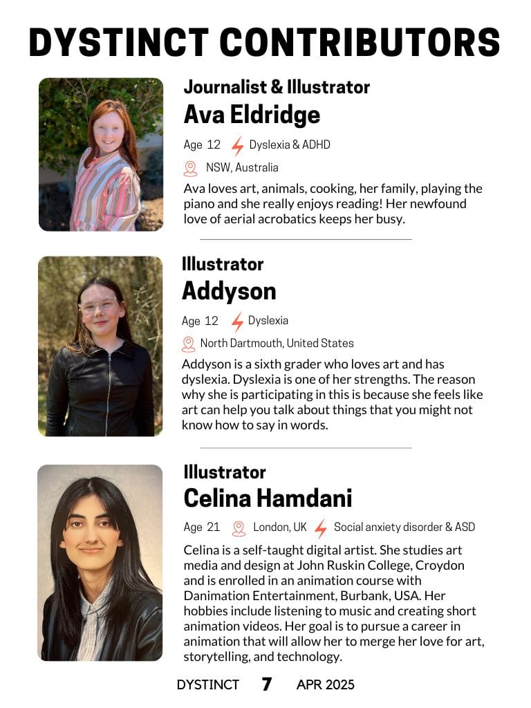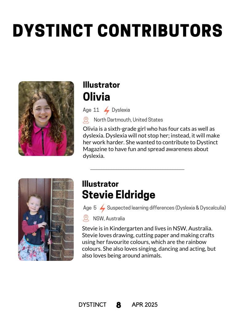 Dystinct Magazine's 26th issue: April 2025 covers inspirational stories from children and adults with learning disabilities (dyslexia, dysgraphia, dysgraphia and dyspraxia) and evidence based articles from leading specialists from the field of learning disabilities.