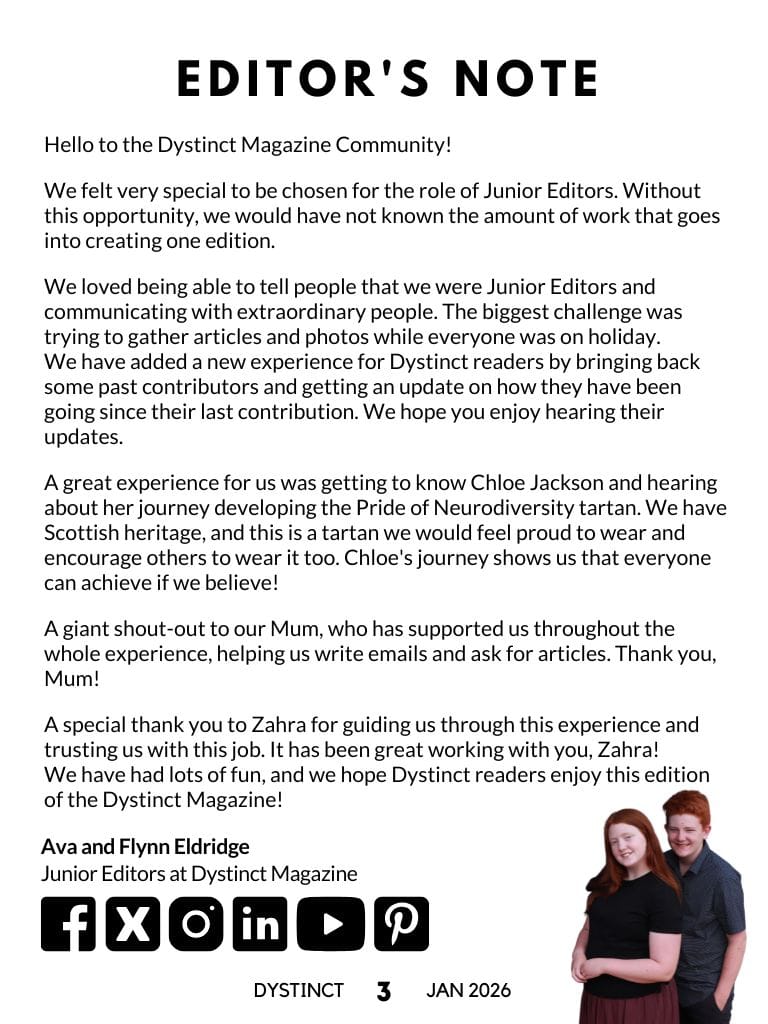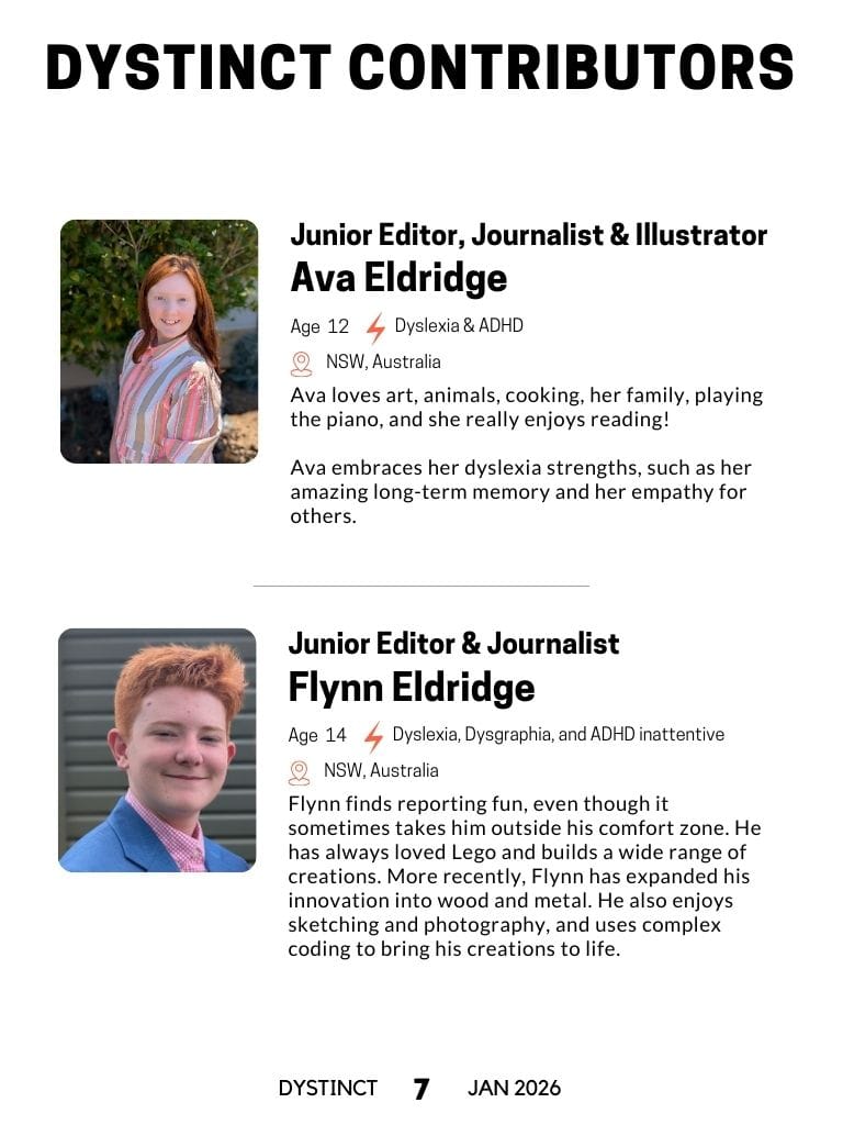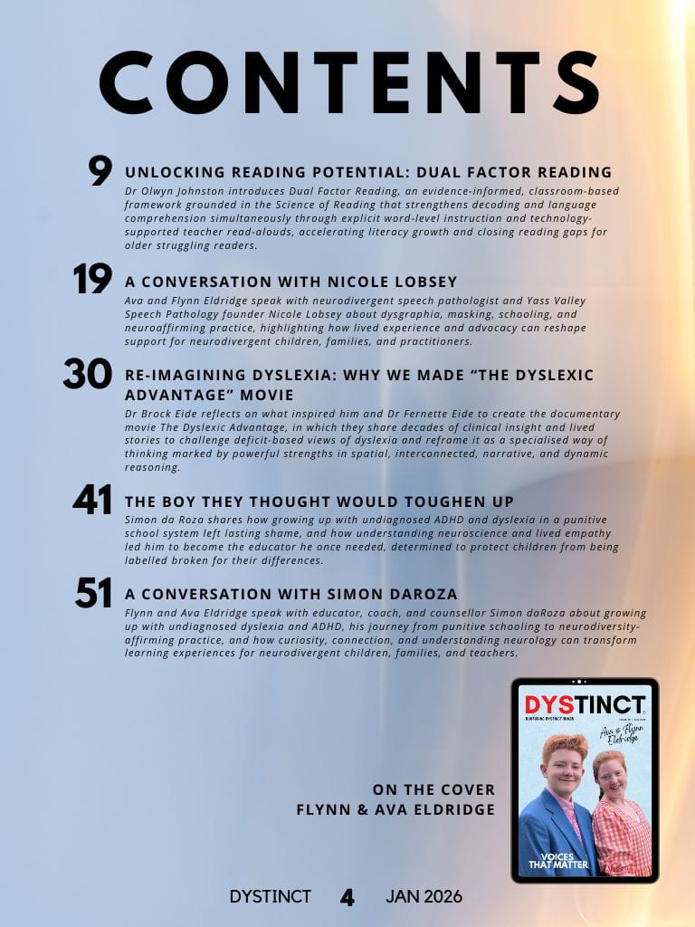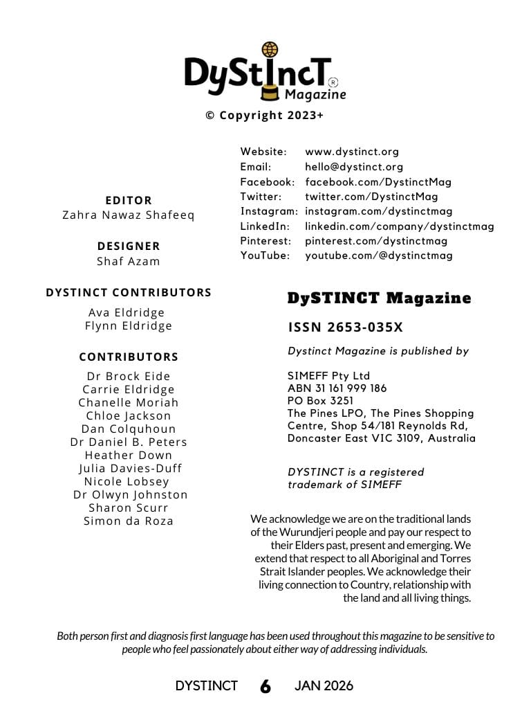 Dystinct Magazine's 29th issue: January 2026 covers inspirational stories from children and adults with learning disabilities (dyslexia, dysgraphia, dysgraphia and dyspraxia) and evidence based articles from leading specialists from the field of learning disabilities.