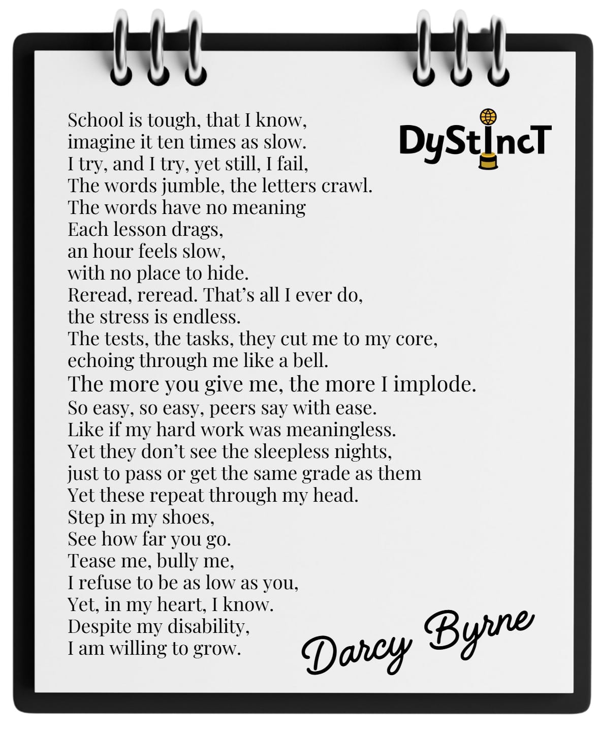 Darcy Byrne, 15, from Canberra, Australia, opens up about her experience with dyslexia through a powerful poem and honest reflection.