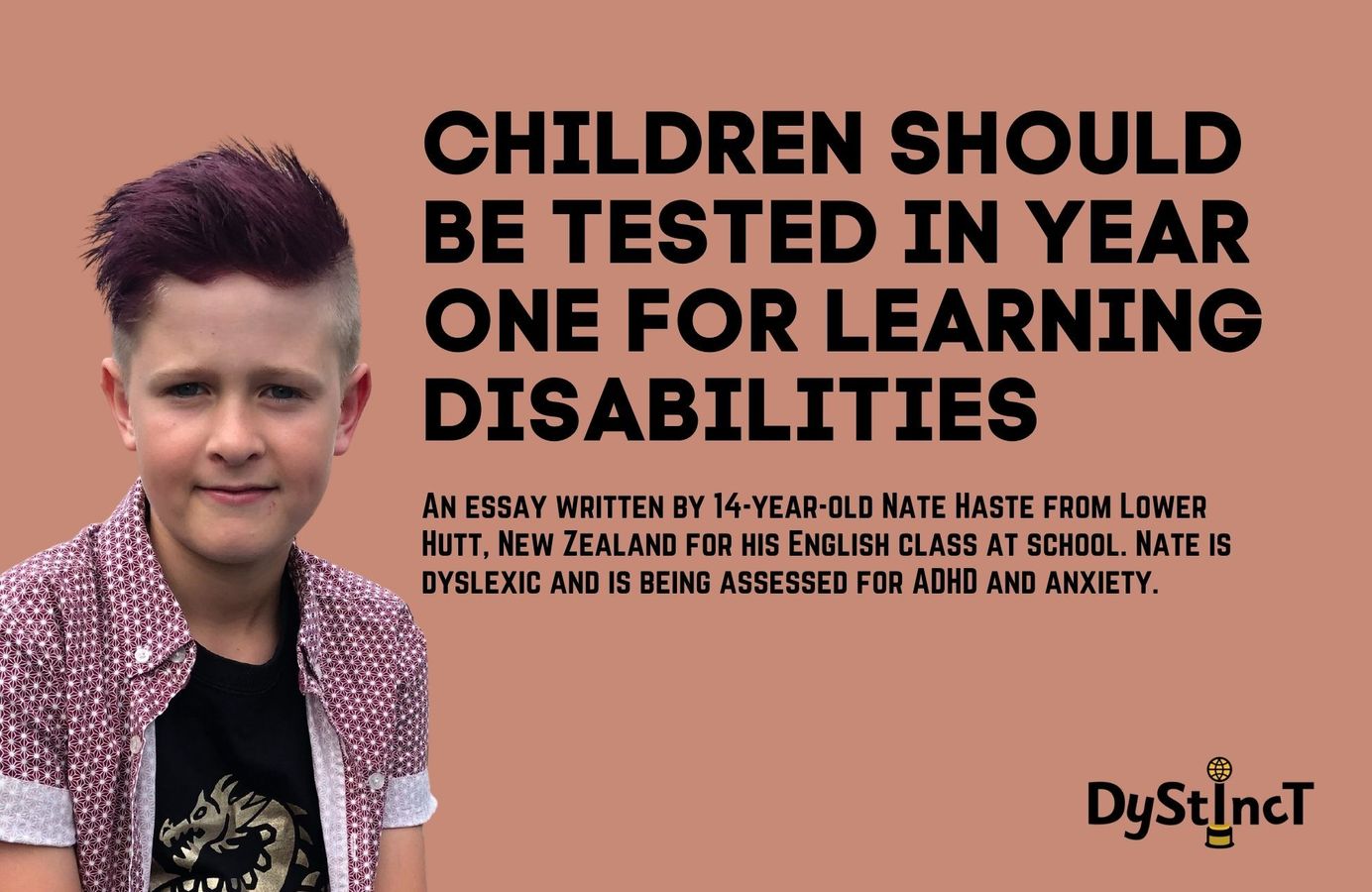 An essay written by 14-year-old Nate Haste to emphasise the importance of testing children for learning disabilities in year one to provide them with appropriate support and strategies early on to prevent long-term negative effects.