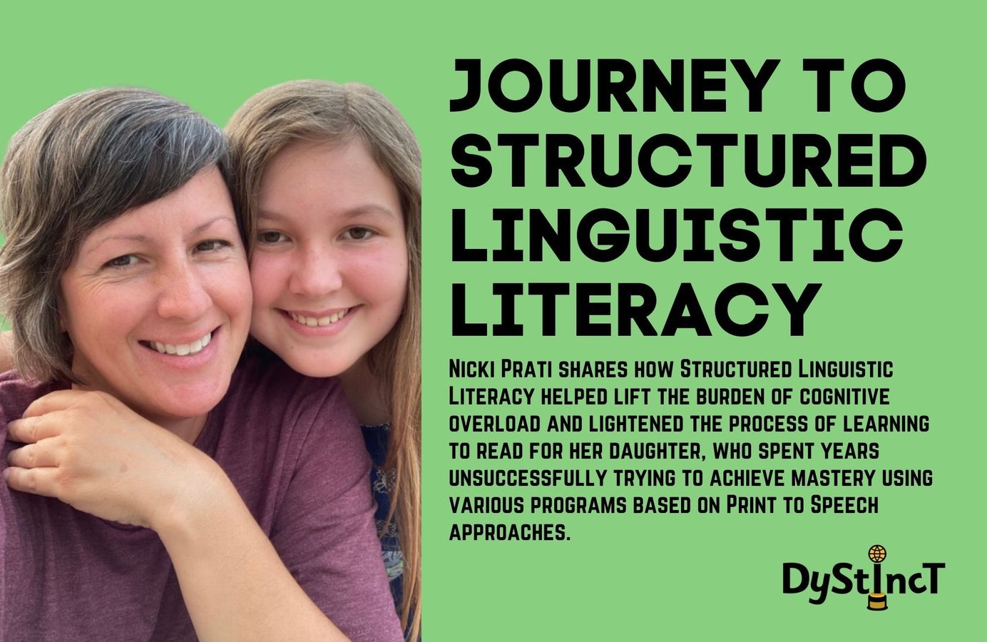 Nicki Prati shares how Structured Linguistic Literacy helped lift the burden of cognitive overload and lightened the process of learning to read for her daughter, who spent years unsuccessfully trying to achieve mastery using various programs based on Print to Speech approaches.