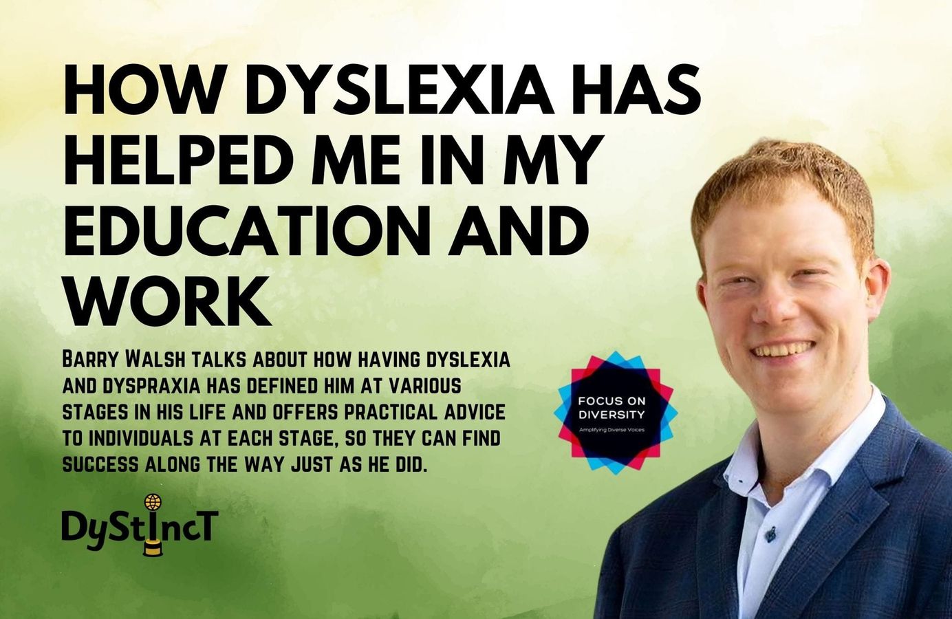 Barry Walsh talks about how having dyslexia and dyspraxia has defined him at various stages in his life and offers practical advice to individuals at each stage, so they can find success along the way just as he did.