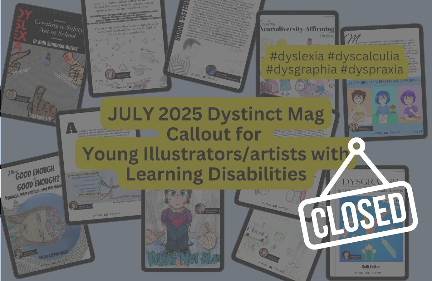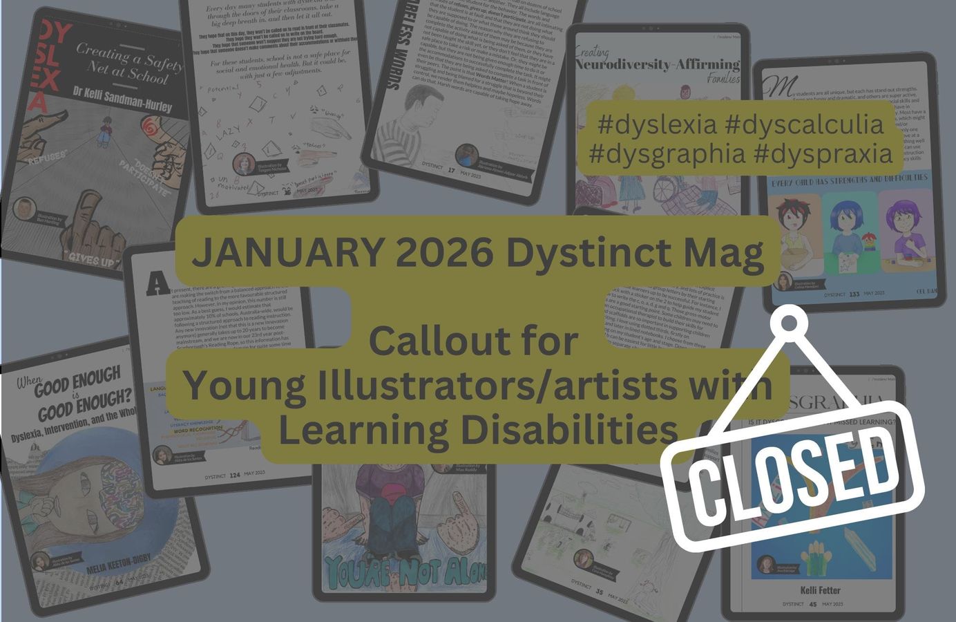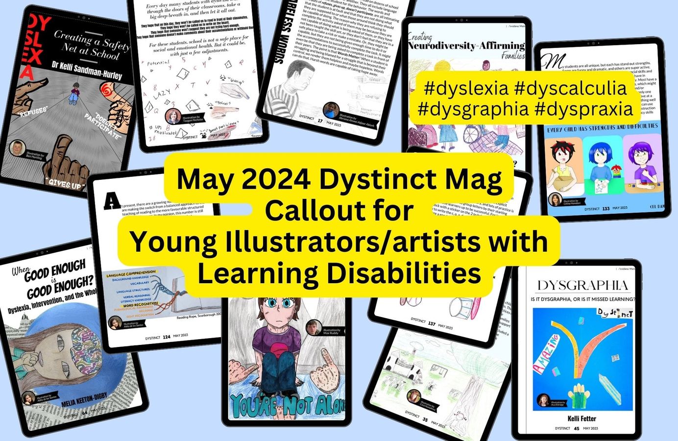 Dystinct Magazine provides a platform for children with learning disabilities (dyslexia, dyscalculia, dyspraxia, dysgraphia) to showcase their illustration talents. In every magazine issue, articles written by specialists are accompanied by illustrations created by children. Check out the list of open available opportunities now and submit your child's illustrations for a chance to be featured in the Dystinct Magazine.