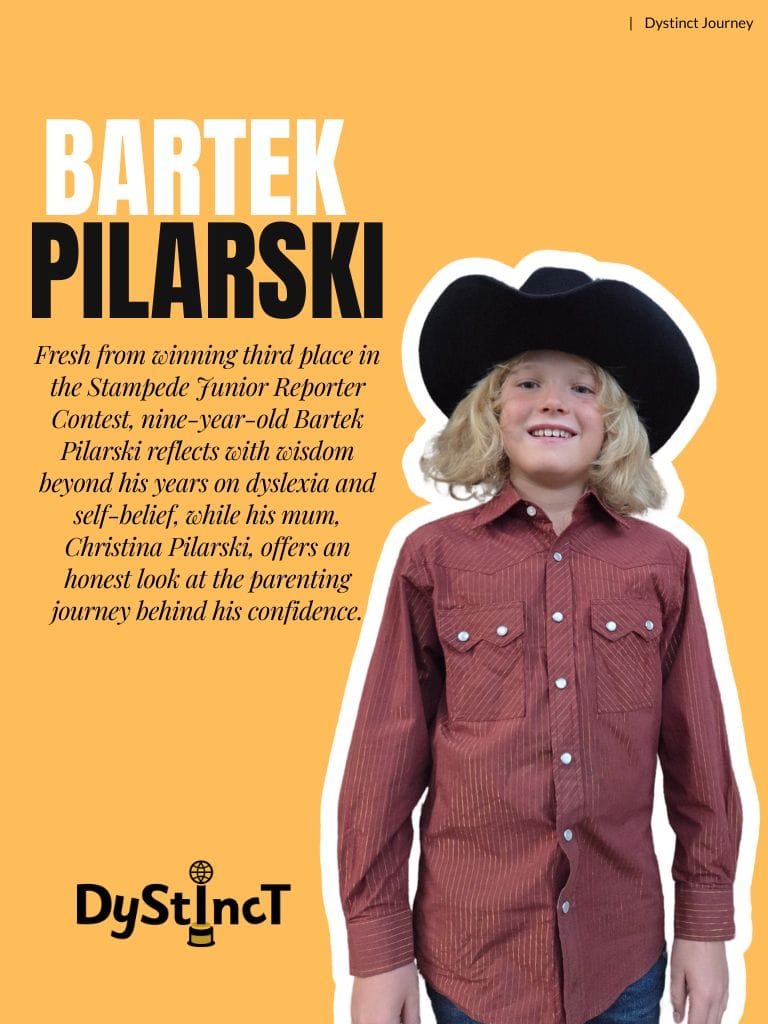 Fresh from winning third place in the Stampede Junior Reporter Contest, nine-year-old Bartek Pilarski reflects with wisdom beyond his years on dyslexia and self-belief, while his mum, Christina Pilarski, offers an honest look at the parenting journey behind his confidence.