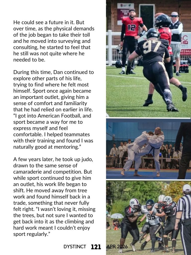 During this time, Dan continued to explore other parts of his life, trying to find where he felt most himself. Sport once again became an important outlet, giving him a sense of comfort and familiarity that he had relied on earlier in life. āI got into American Football, and sport became a way for me to express myself and feel comfortable. I helped teammates with their training and found I was naturally good at mentoring.ā