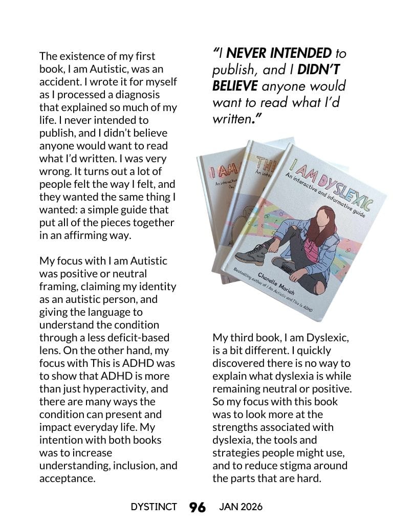 Chanelle Moriah reflects on becoming an unexpected best-selling author despite lifelong struggles with reading and learning, sharing how their lived experience of autism, ADHD, and dyslexia shaped a series of affirming, community-informed books that challenge deficit-based narratives.