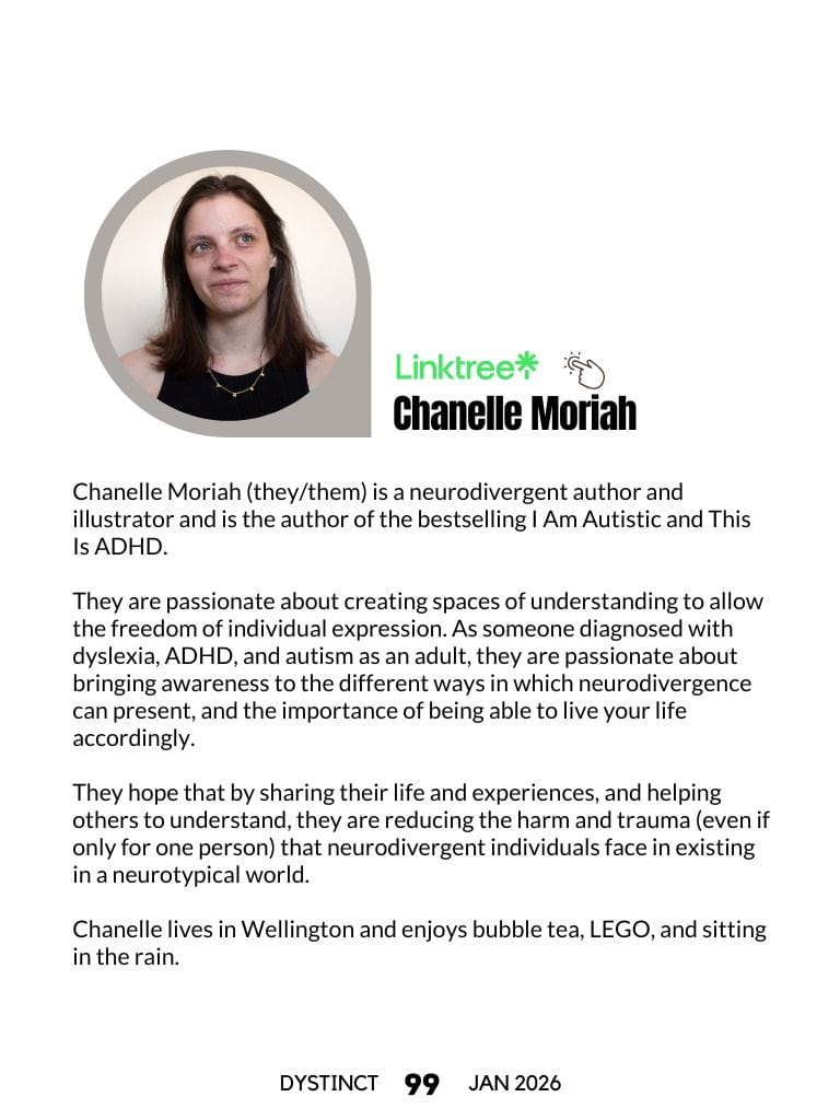Chanelle Moriah (they/them) is a neurodivergent author and illustrator and is the author of the bestselling I Am Autistic and This Is ADHD.