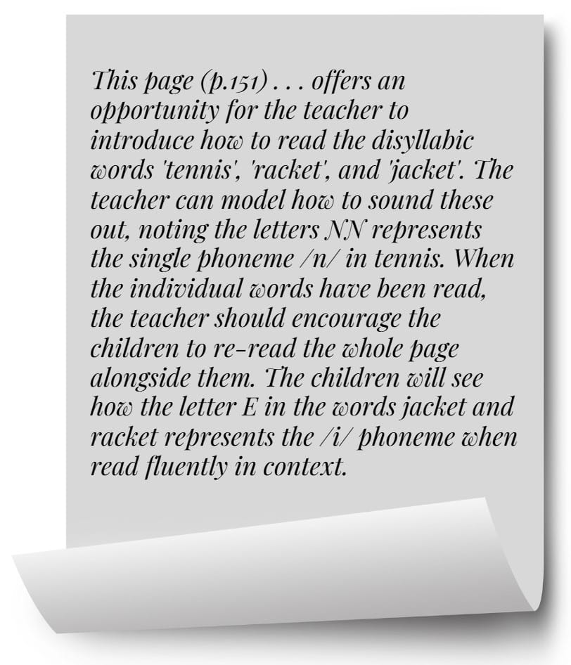 It's not that we don't want to teach "real texts" that facilitate "making connections between reading and writing" by "teaching about words, sentences, and larger text structures" in addition to "learning about the alphabetic code." It's just that we don't want to do it all at the same time. This mixing and matching morphs into a complex, convoluted process that has echoes of the film title Everything, Everywhere, All at Once: every literacy component, everywhere on the page, taught all at once. Here's an example of the complexity where the authors describe how to teach one page of the book: